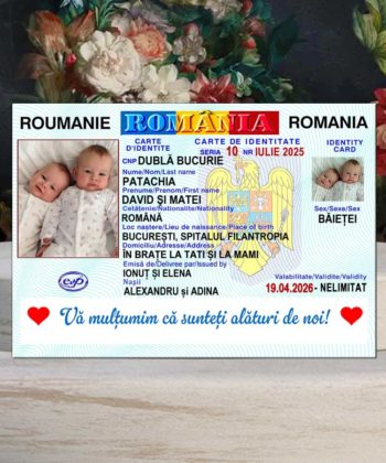 Marturii botez gemeni baieti magneti buletin cu plicuri personalizate cu o poza