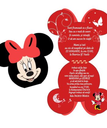 Invitatii botez forma Minnie Mickey Mouse