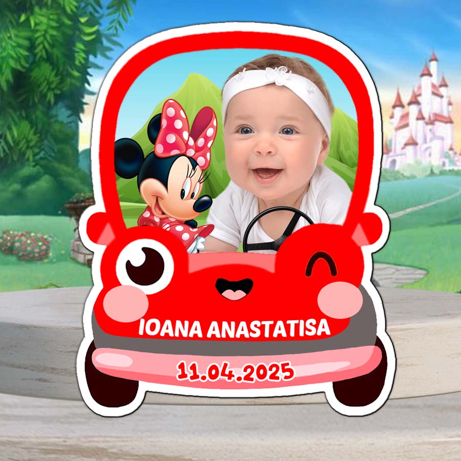 Magnet Masinuta Minnie Mouse – Marturii personalizate pentru botez fetite care aduc zambete si amintiri de neuitat