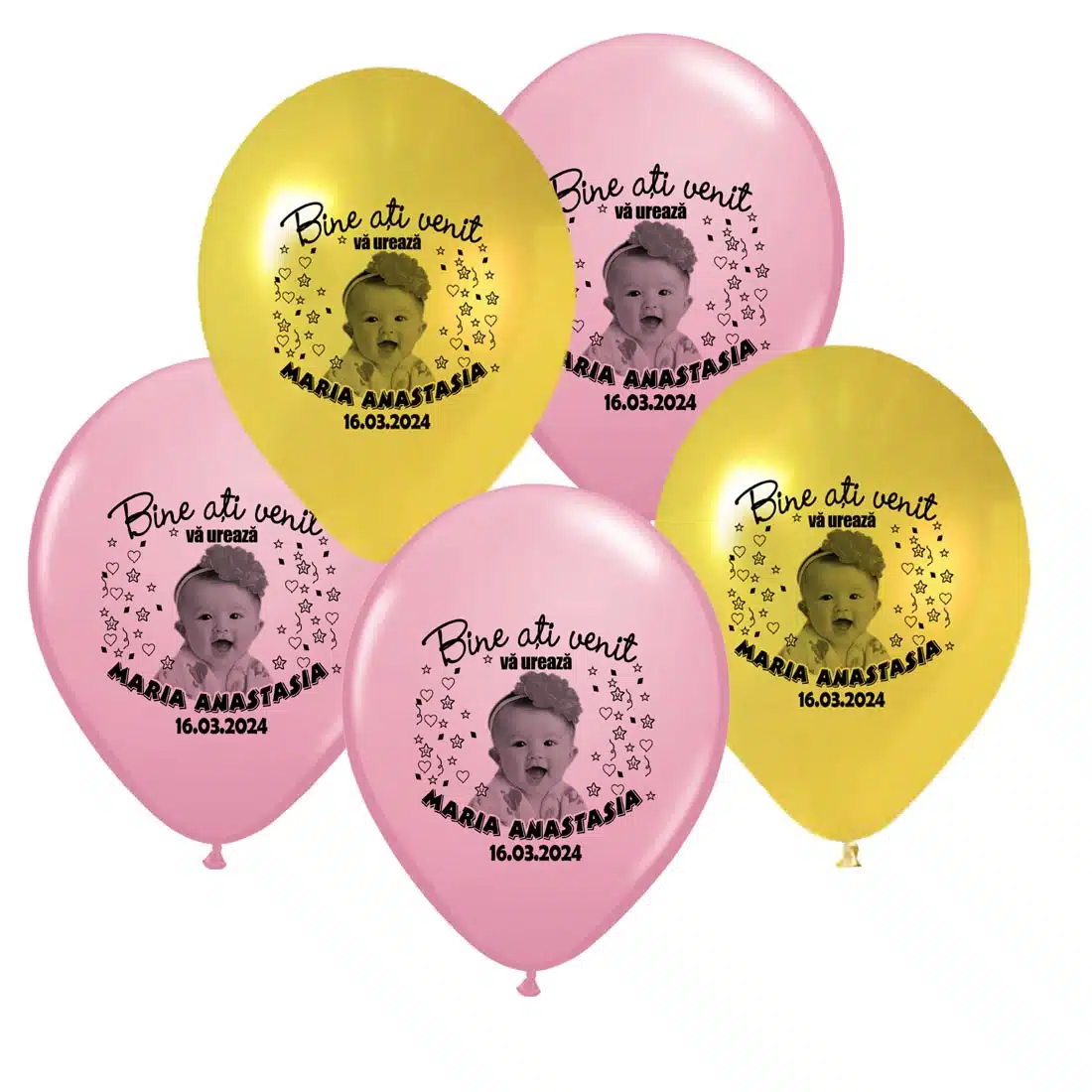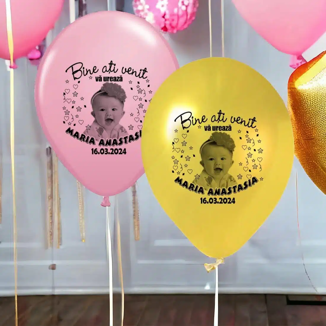 Baloane personalizate cu poza, mesaj, prenume bebe si data, tematica stelute