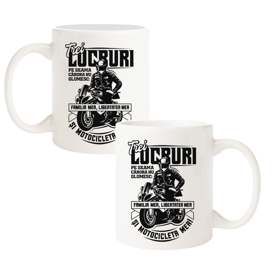 Cana din ceramica, culoare alba, personalizata pe ambele parti identic cu mesaj, tematica motociclisti.