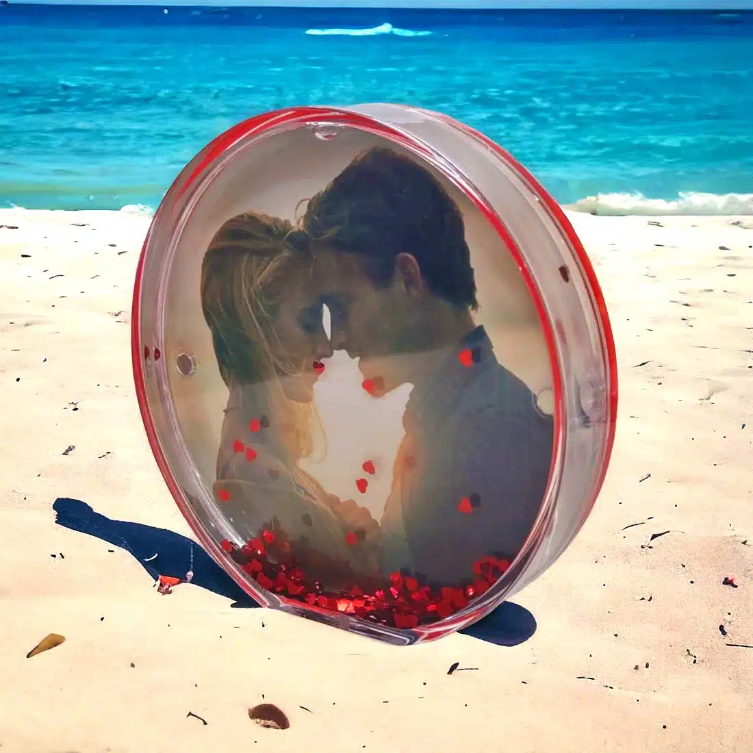 Glob cu inimioare,  forma rotunda, personalizat cu fotografia dorita.