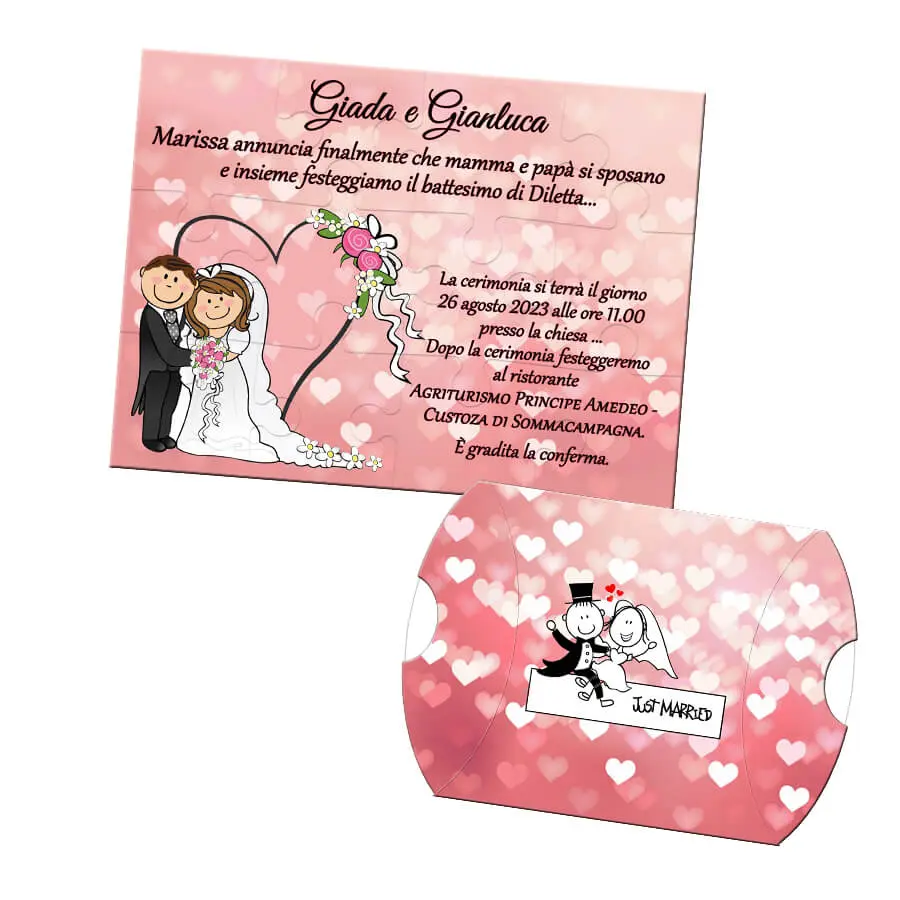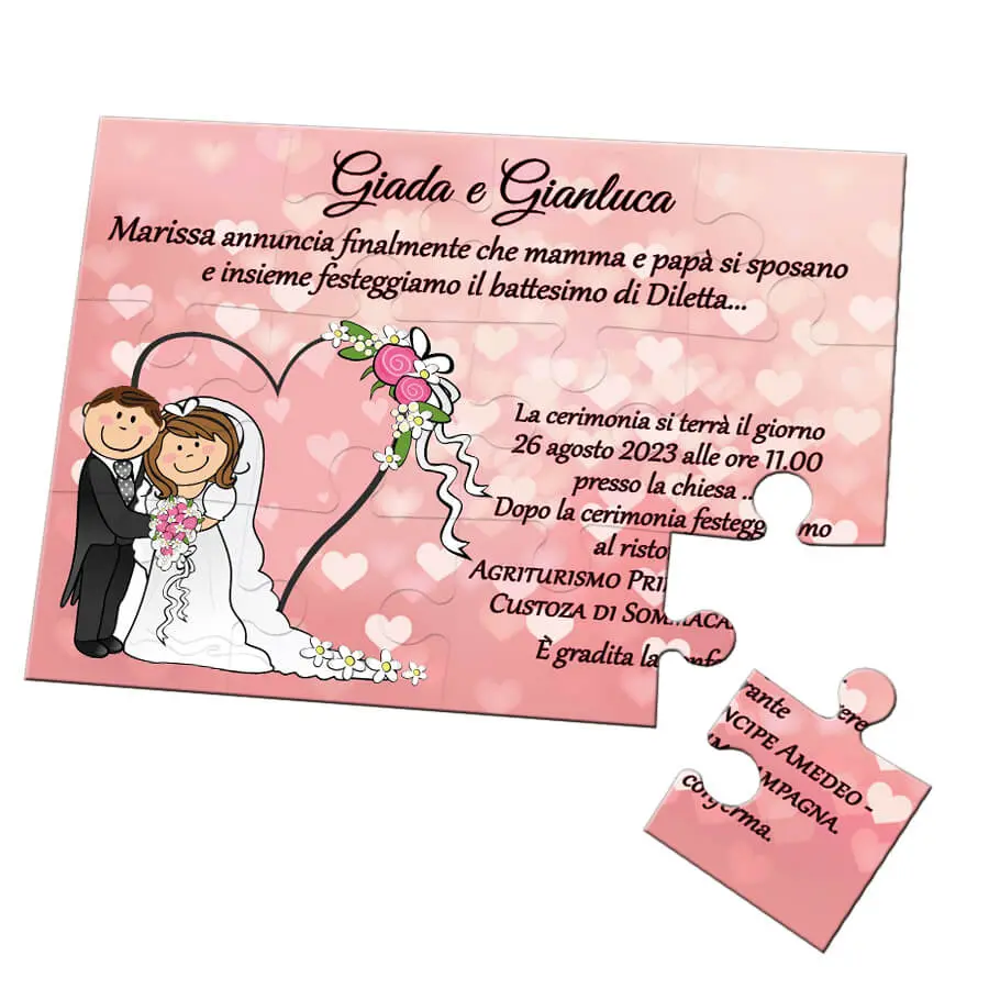 Invitatie pentru nunta puzzle 12 piese, invitatie tip joc puzzle