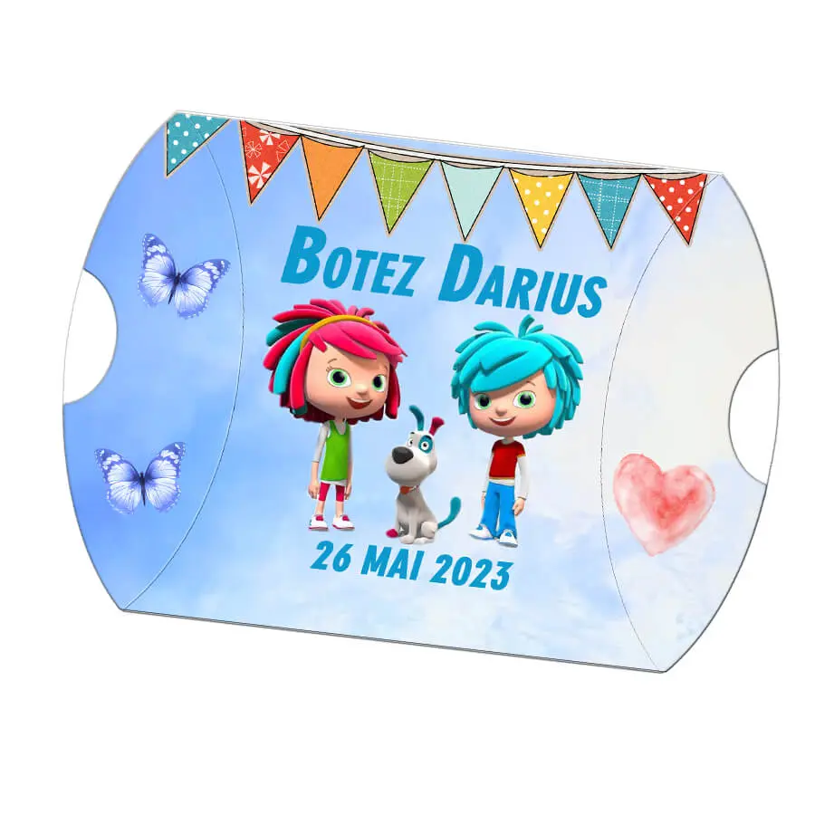 Cutia pentru puzzle este din carton 300 gr lucios, personalizata fata si verso (nunta si botez).
