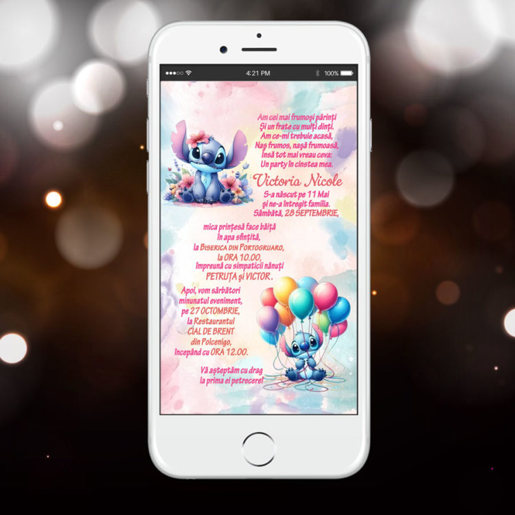 Invitatii Botez Digitale Stitch – Invitatii Botez Online