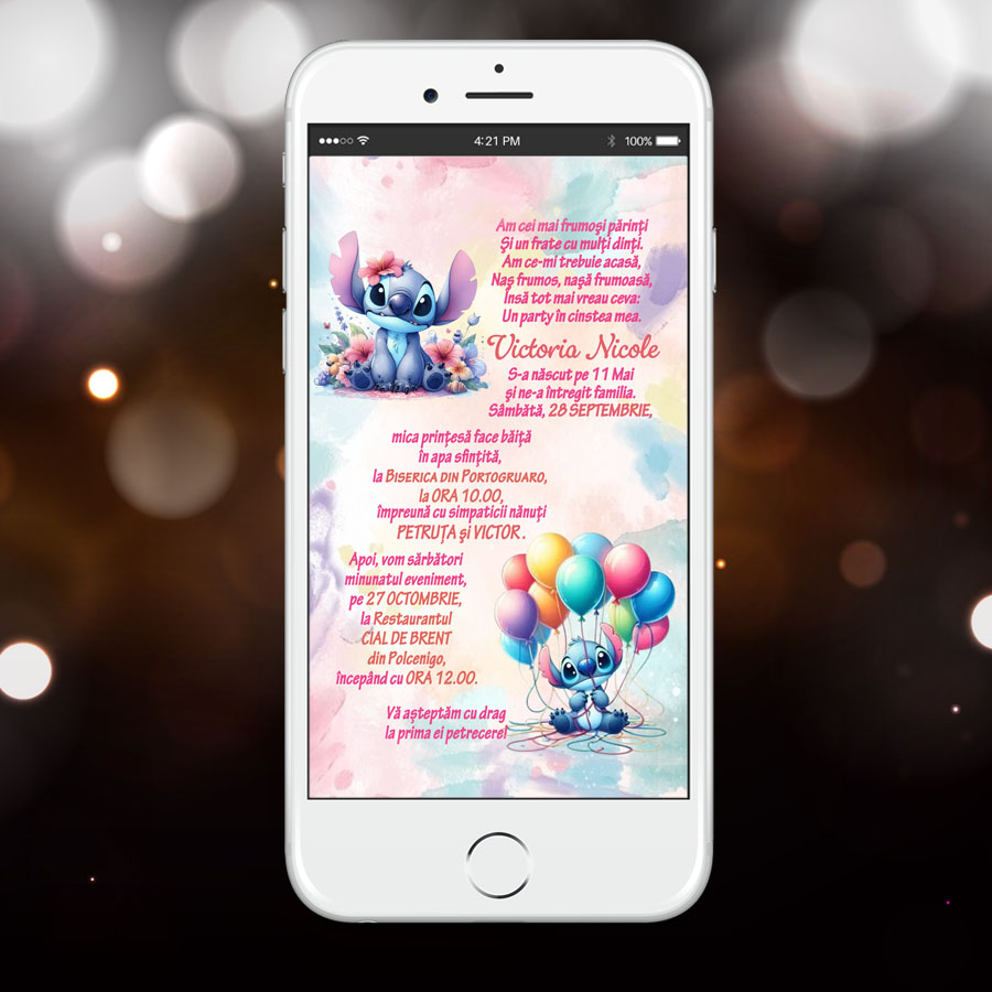 Invitatii Botez Digitale Stitch - Invitatii Botez Online