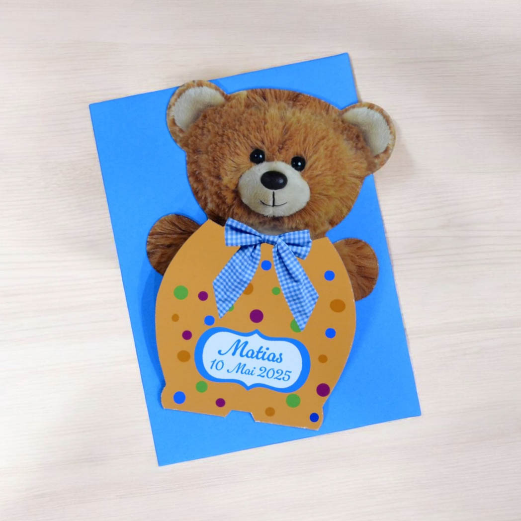 Invitatii Botez Ursulet 680970 Baieti – Plic Albastru si Personalizare Text