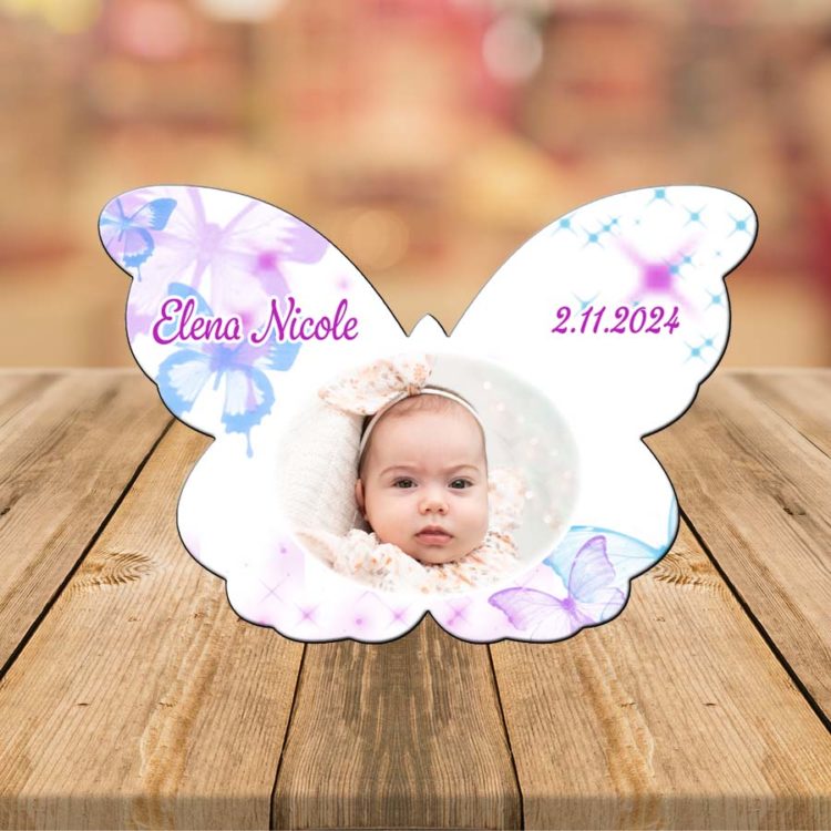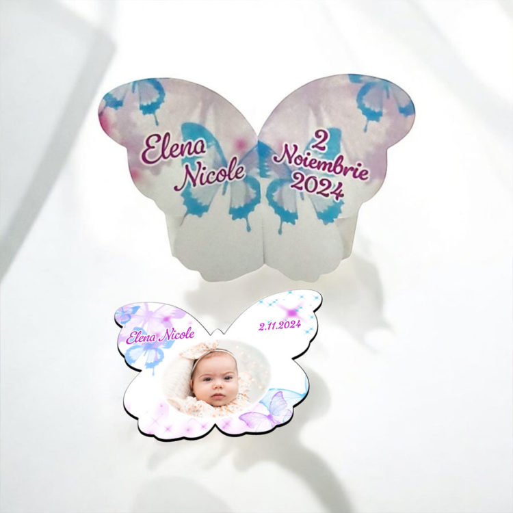 -Marturie magnetica forma fluture, personalizata cu fotografia dorita;