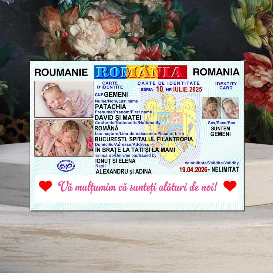marturii botez gemeni fetite magneti buletin cu doua poze