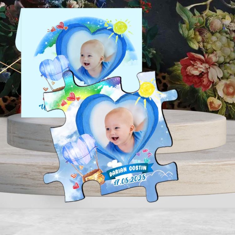 Magnetul marturie pentru botez in forma de piesa puzzle, se personalizeaza cu fotografia si textul dorit.
