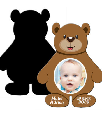 – marturia se personalizeaza cu fotografia dorita, prenumele bebelusului si data evenimentului (sau data nasterii);