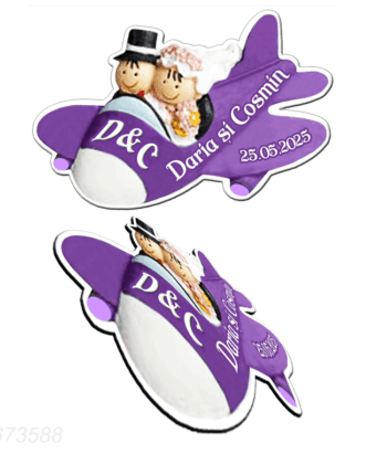 Pentru personalizare, atasati o fotografie, completati data evenimentului si prenumele mirilor.