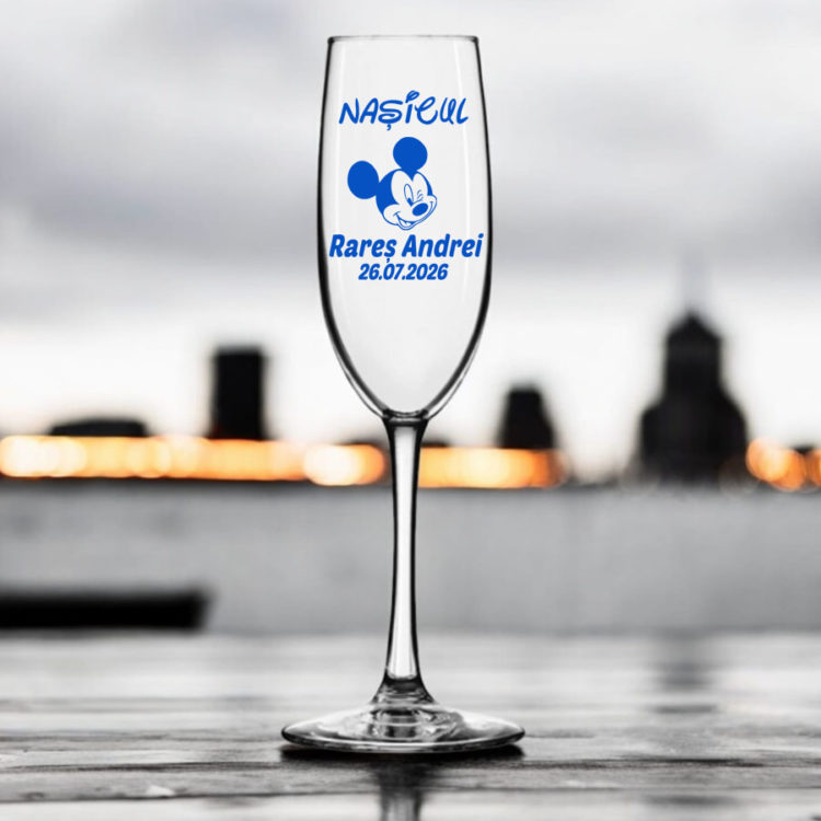 Pahar sampanie personalizat cu vopsea pentru sticla.