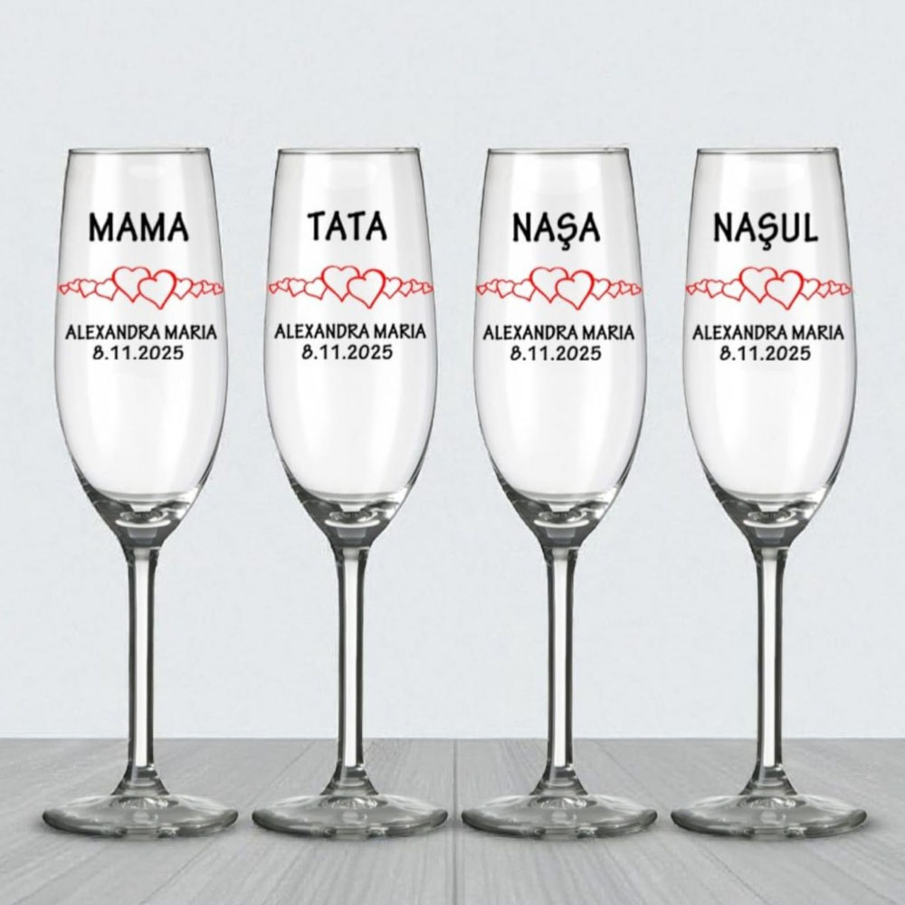 Pahare botez  –  set 4 bucati: Mama, Tata, Nasul, Nasa