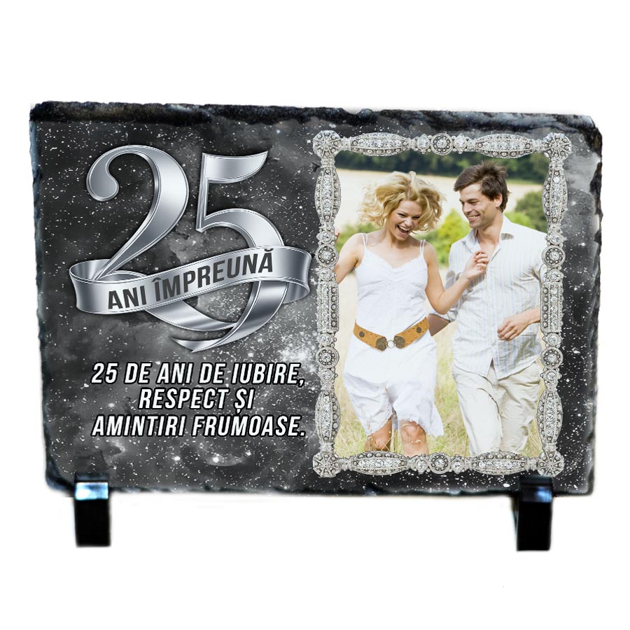 Tablou ardezie personalizat aniversare 25 ani de casatorie cu fotografieCelebreaza 25 de ani de iubire si momente traite impreuna cu un tablou din piatra ardezie,